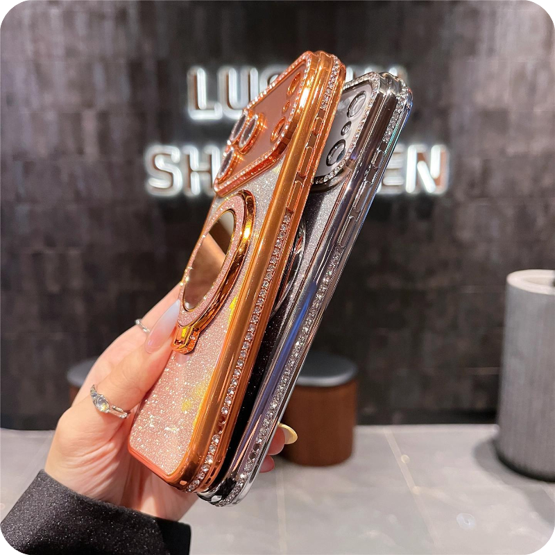 Gradient Diamond Glitter Mirror Stand Case for iPhone Series